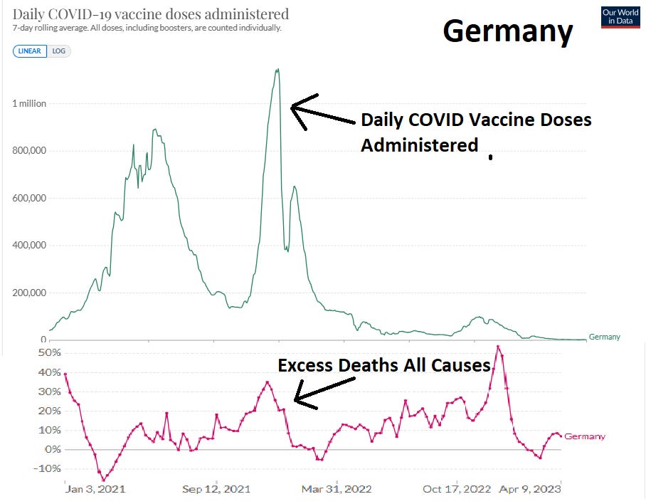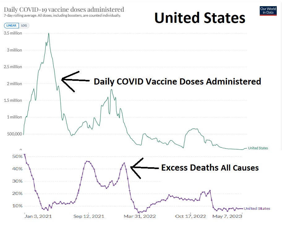 Dr. Naomi Wolf, a former Bill Clinton White House advisor, in October 2023 published startling correlations in many countries between COVID vaccination rates and excess deaths in that country, over time. Nevertheless the findings were buried by the media, rather than subject to open debate.