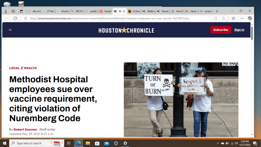 In related legal actions, a lawsuit first filed in 2021 against Houston Methodist Hospital by over 100 healthcare professionals refusing to comply with new COVID vaccine mandates is going to the Fifth Circuit Court of Appeals, after being struck down by judges under arguments such as the defendants didn’t actually physically give the shots to the plaintiffs, and that the World War II Nuremberg Code only applied to countries, not private companies. The latter argument would then presume that people could engage in forced medical experimentation as long they were private entities.