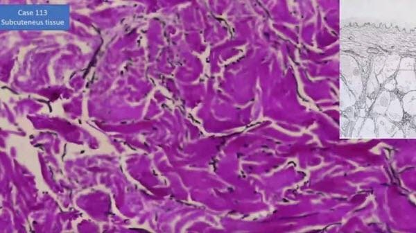 Damaged elastic fibers in the subcutaneous tissue (10/11)