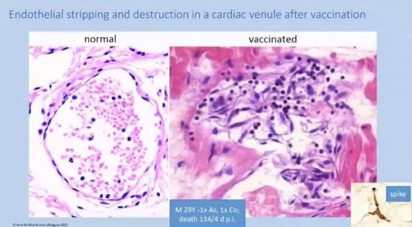 So, it’s the endothelium that is the first a target of the vaccination and as we have endothelium in all organs except for the teeth and some other structures—all organs are affected, and actually we could demonstrate the spike protein in practically all organs—mainly in the vessels.